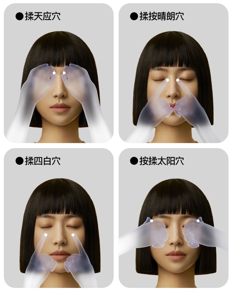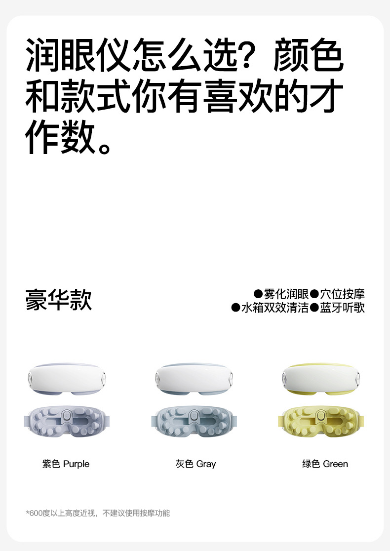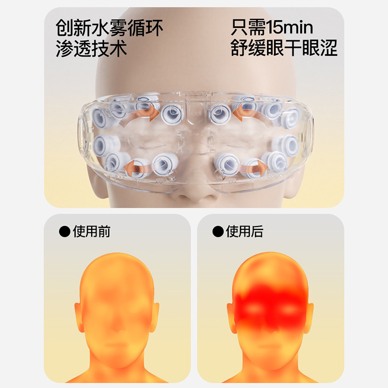 ●溫感蒸汽+冷敷,解決眼腫眼脹;霧化潤眼+按摩,解決眼干眼澀,放松眼周肌肉。
