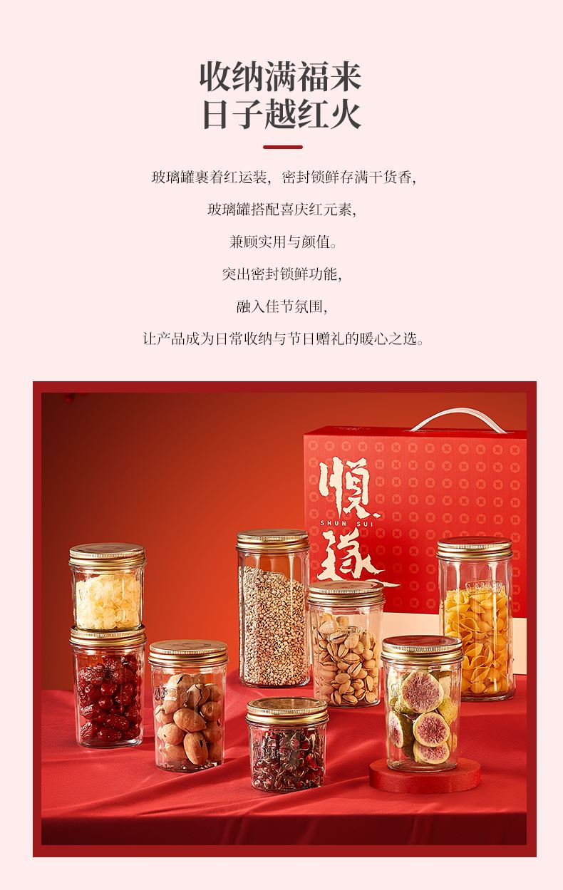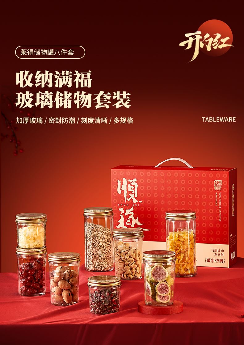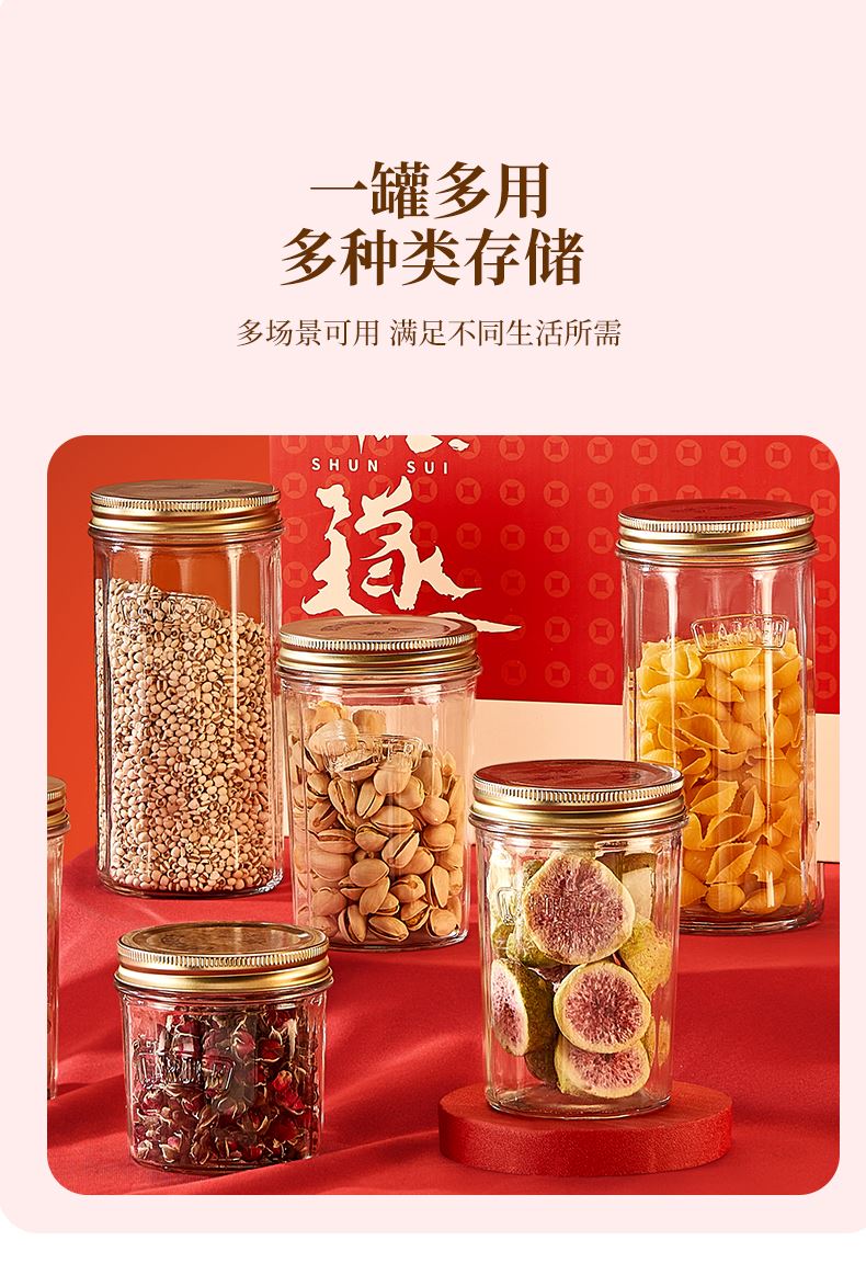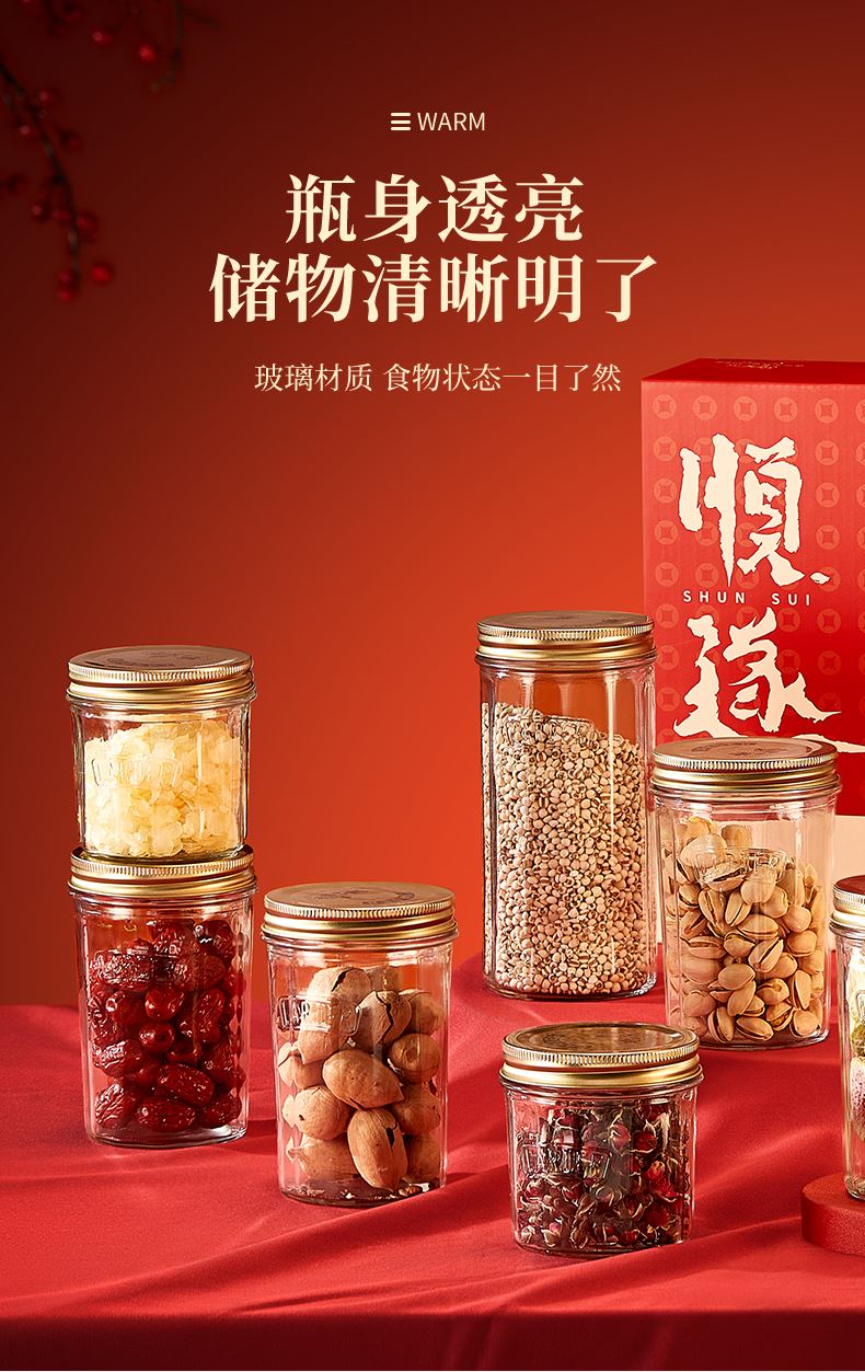 1.采用高透光無鉛玻璃瓶身,無毒無異味,可直接接觸食材,符合健康飲食需求,透明質地清晰展示內容物狀態。?2.復古工業美學設計復刻1927年經典工業風,古銅色馬口鐵螺紋防滑蓋+棱紋金屬質感,搭配疊落式結構。?3.三容量選擇,滿足廚房儲物、吧臺調酒、辦公收納等需求;可疊放設計節省空間,成組擺放提升空間格調。