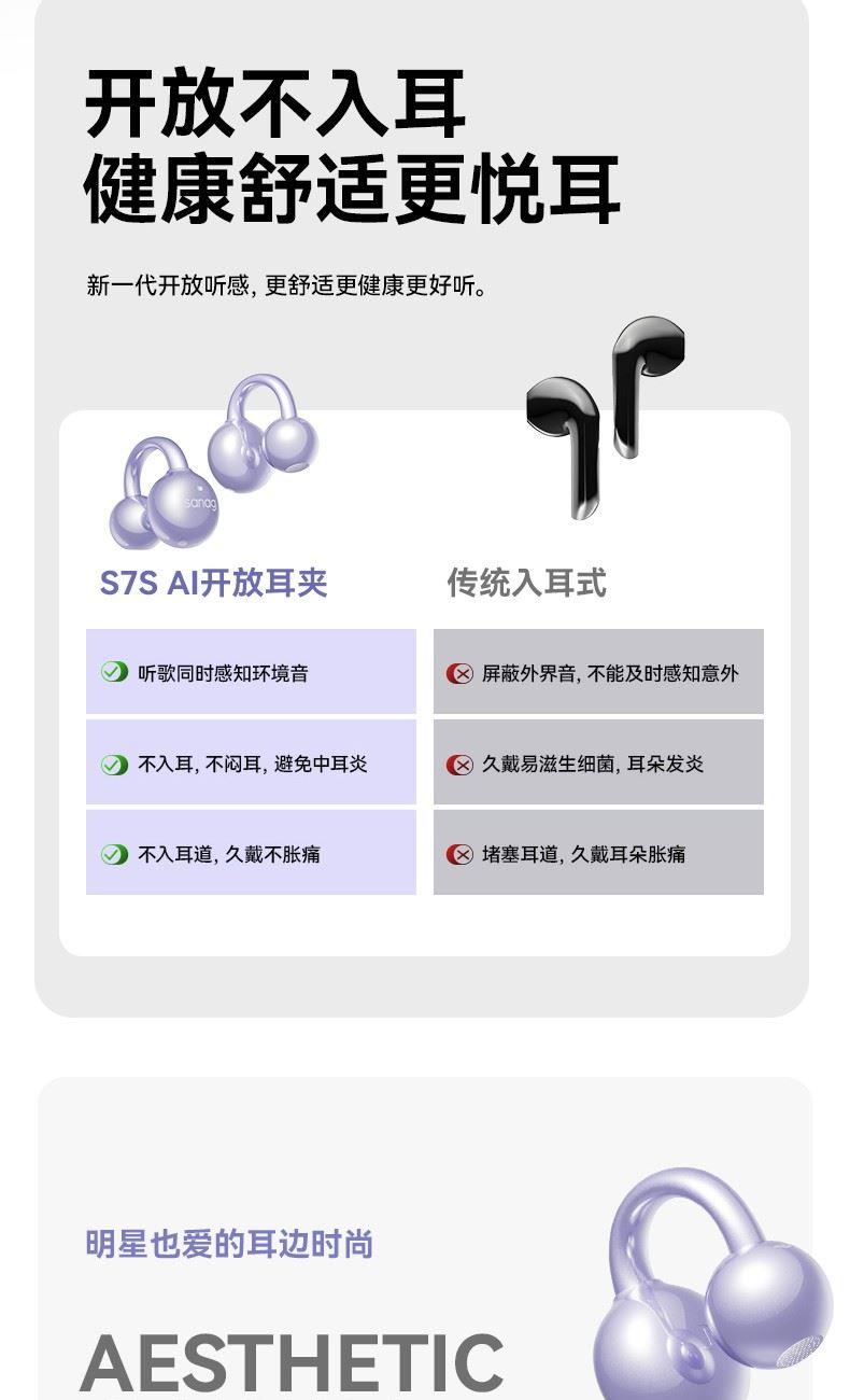sanag塞那開放式降噪耳夾藍牙耳機S7SAI