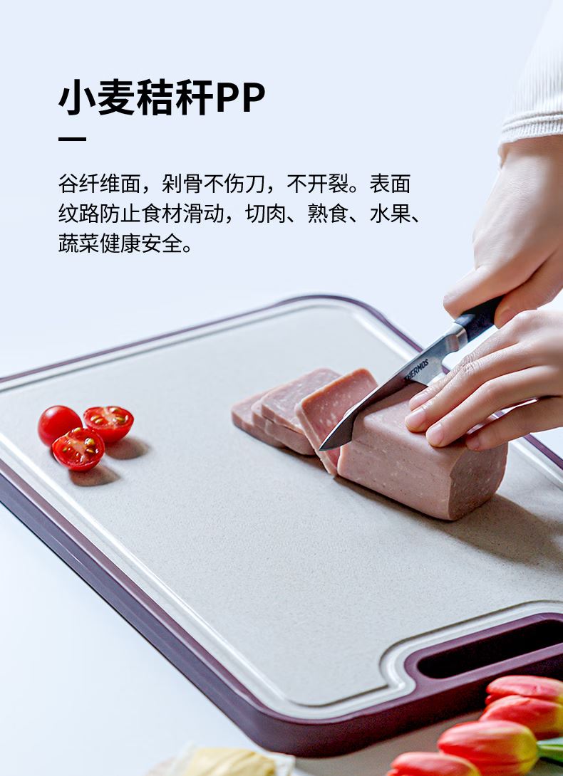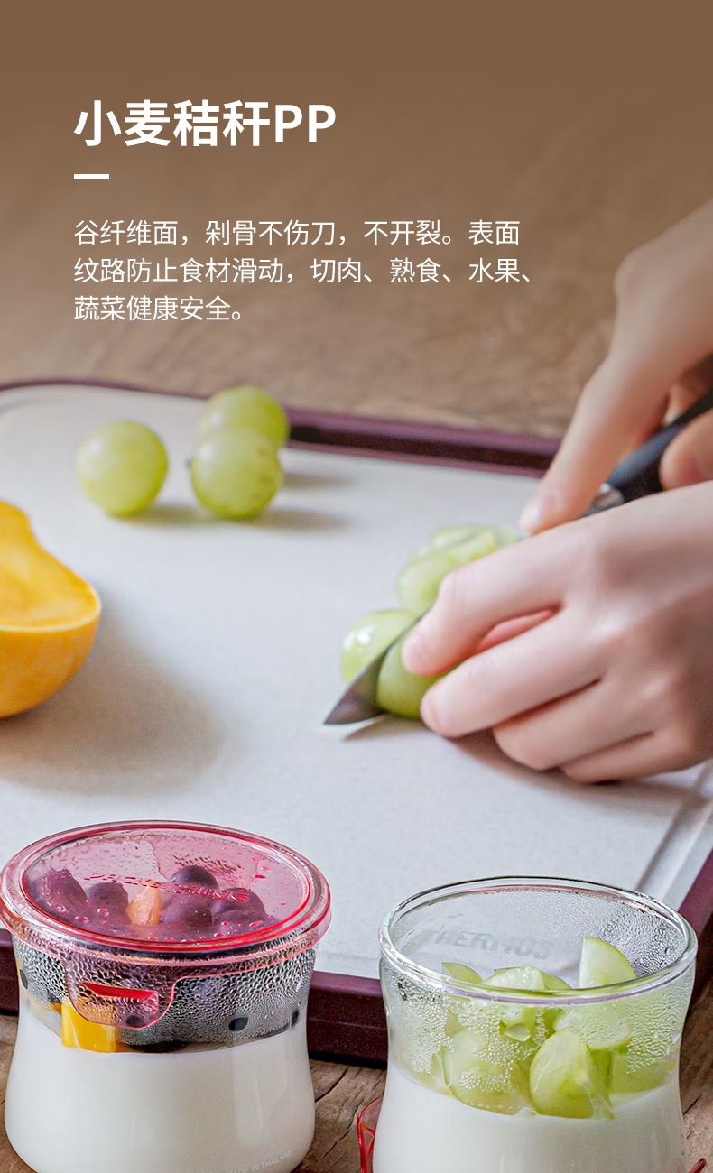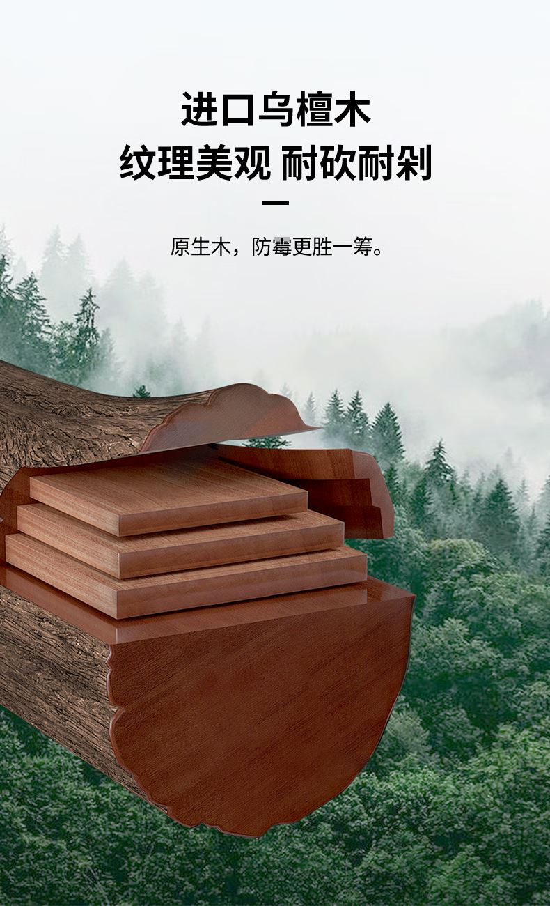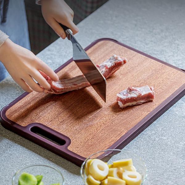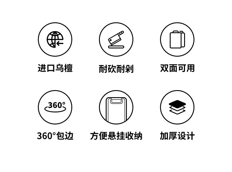 產品材質:烏檀木+小麥秸稈PP 尺 寸: 40*28*2cm 裝 箱 數 : 6個/箱 毛 重 : 1.5kg 盒 尺 寸 : 400*280*20mm 條 形 碼:6926497308167 功能賣點: 1、原生進口烏檀木,耐砍耐剁更防霉 2、谷纖維面不傷刀不開裂 3、雙面設計,生熟分開更健康 4、防溢凹槽設計,汁水不外流,臺面更干靜 5、一體式可懸掛提手,告別雜亂,節省臺面空間