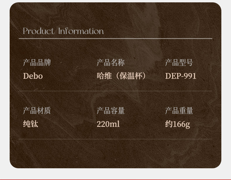 Debo哈維純鈦保溫杯220mlDEP-991 Debo哈維純鈦保溫杯220mlDEP-991