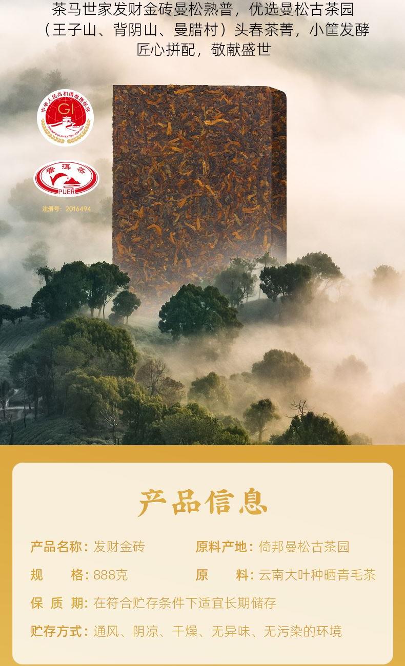 茶馬世家發財金磚曼松普洱熟茶禮盒裝888g 茶馬世家發財金磚曼松普洱熟茶禮盒裝888g